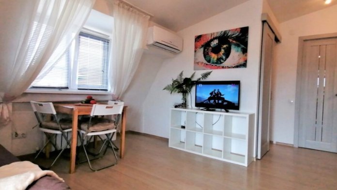 Апартаменты представляют собой евро-двушку (кухню-гостинную и изолированную спальню). В апартаментах своя кухонная зона со всем оборудованием для приготовления пищи, свой санузел с душевым отсеком. Вход в апартаменты отдельно с улицы. Есть терраса с видом на горы и город, на которой можно выпить чашку кофе или бокал вина. Для любителей барбекю есть небольшая мангальная зона во дворе дома.