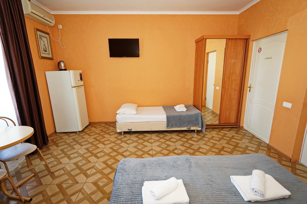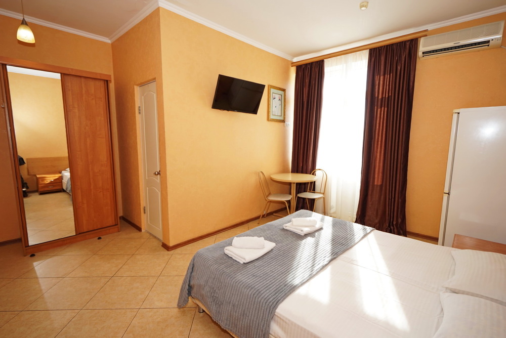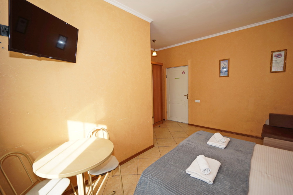Улучшенные стандарты отличаются наличием собственного с/узла в пределах комнаты. Жилая комната со всей необходимой мебелью; ТВ, сплит-система, электрический чайник, холодильник, шкаф; двуспальная кровать и односпальная или кресло-кровать; с/узел с душевой кабиной, феном и банными принадлежностями, сейф.