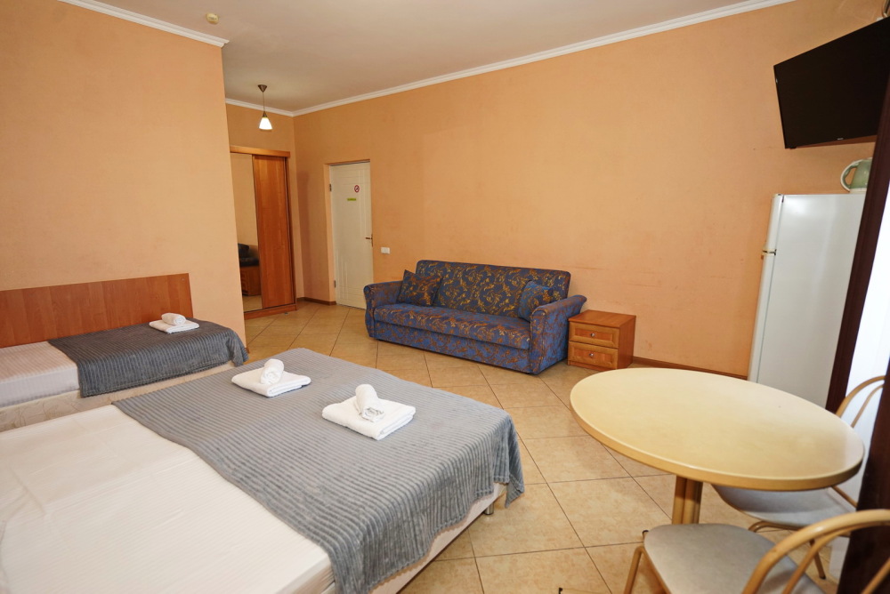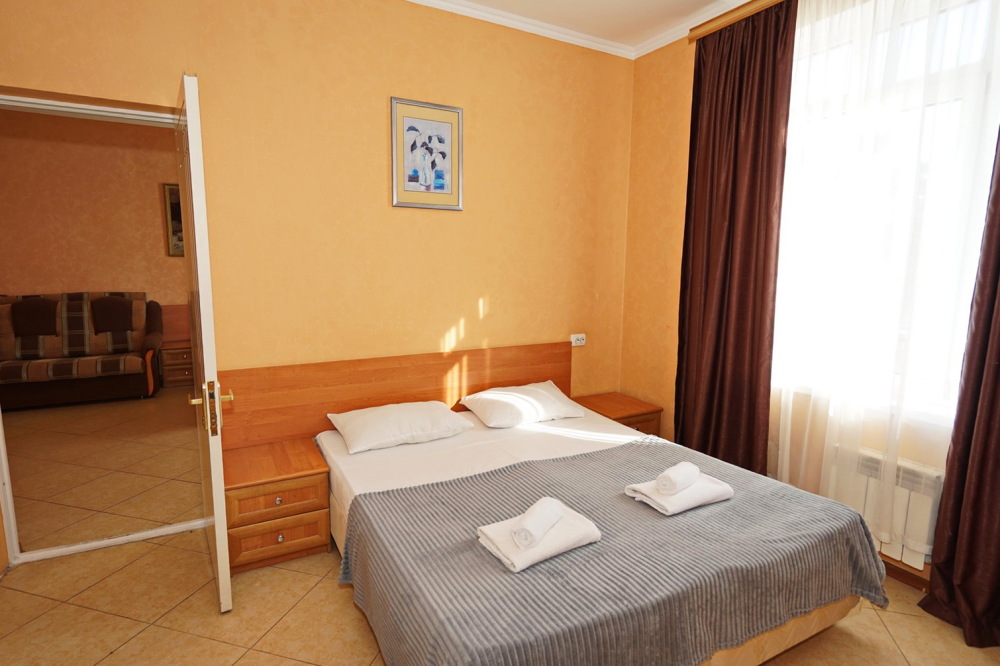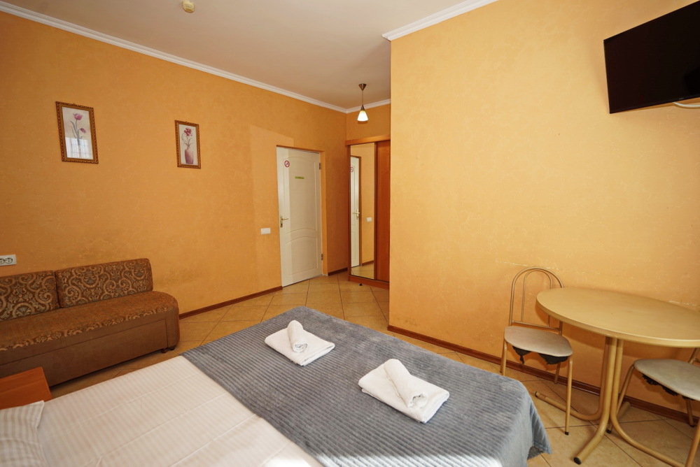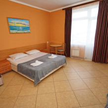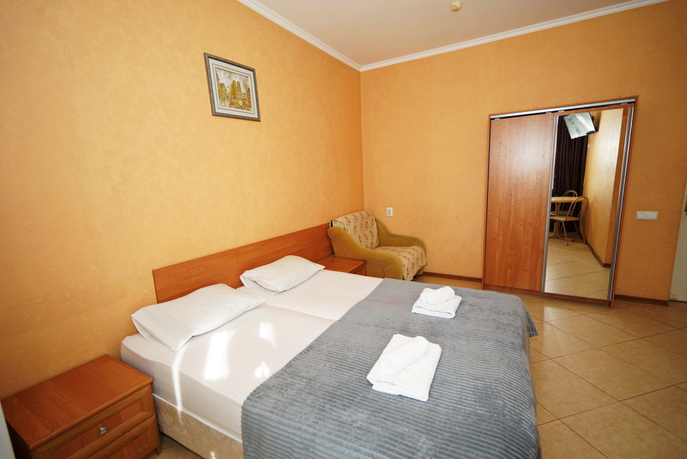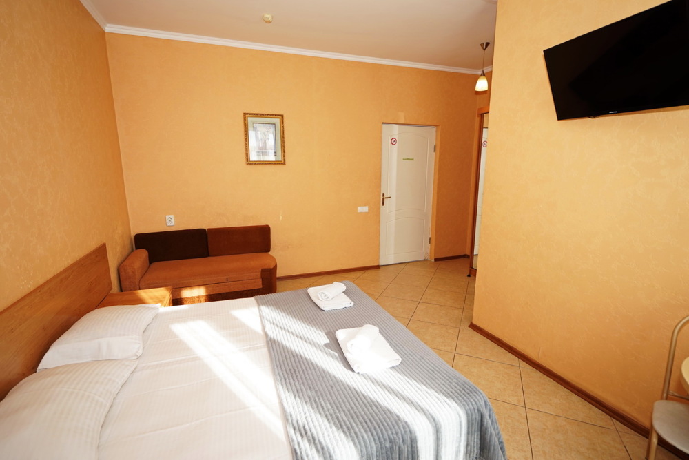 Улучшенные стандарты отличаются наличием собственного с/узла в пределах комнаты. Жилая комната со всей необходимой мебелью; ТВ, сплит-система, электрический чайник, холодильник, шкаф; двуспальная кровать и односпальная, кресло-кровать ; с/узел с душевой кабиной, феном и банными принадлежностями, сейф.