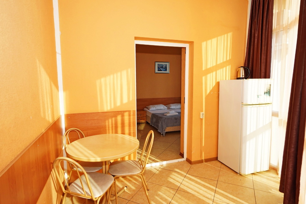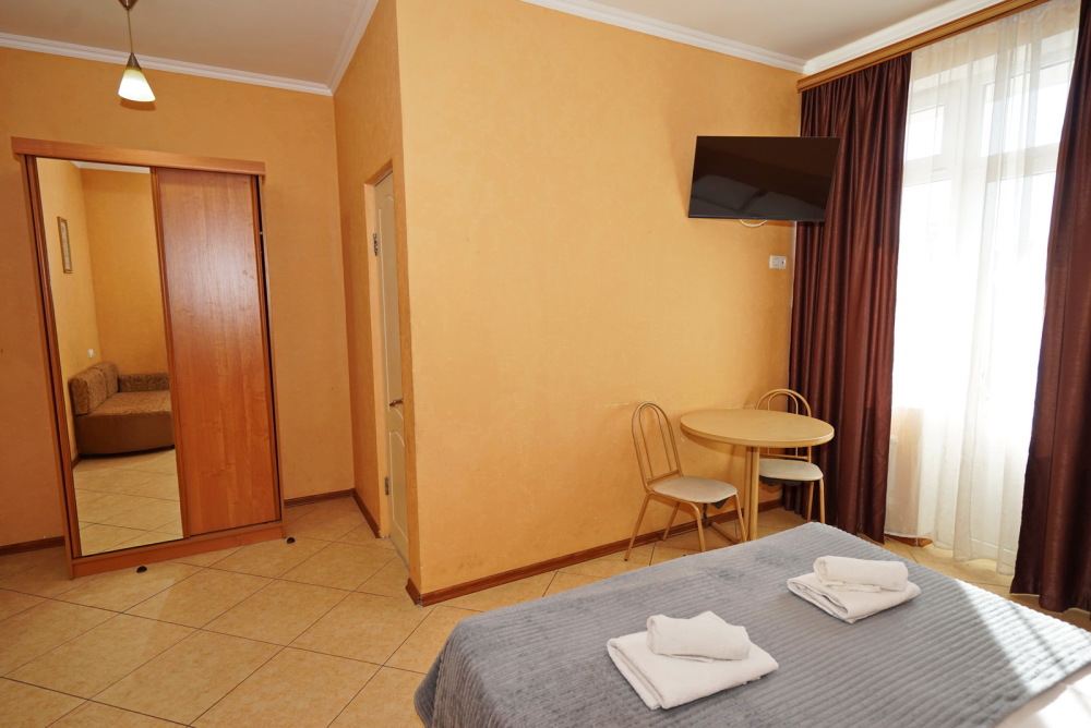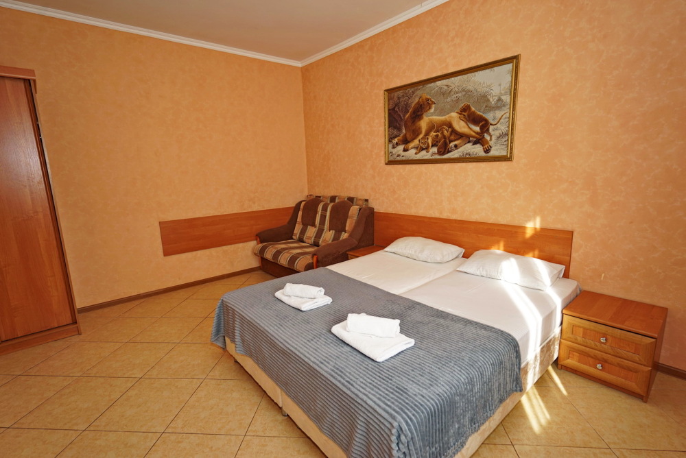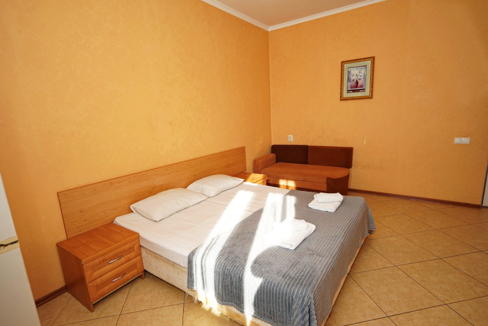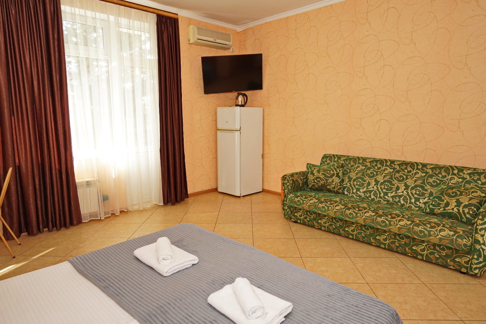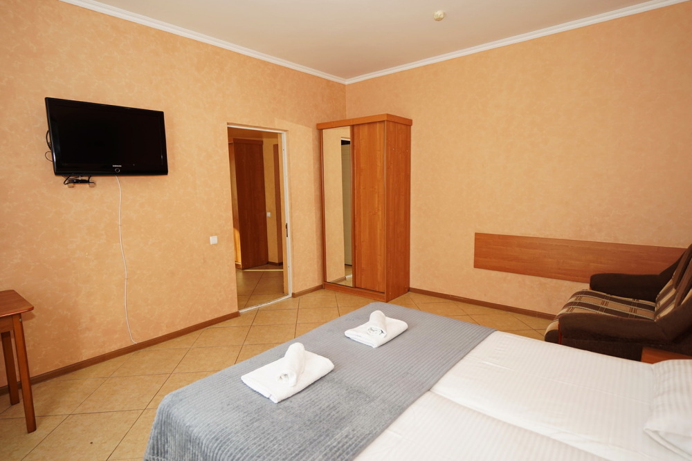 Улучшенные стандарты отличаются наличием собственного с/узла в пределах комнаты. Жилая комната со всей необходимой мебелью; ТВ, сплит-система, электрический чайник, холодильник, шкаф; двуспальная кровать и односпальная, кресло-кровать ; с/узел с душевой кабиной, феном и банными принадлежностями, сейф.