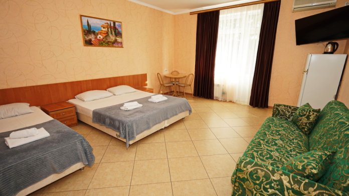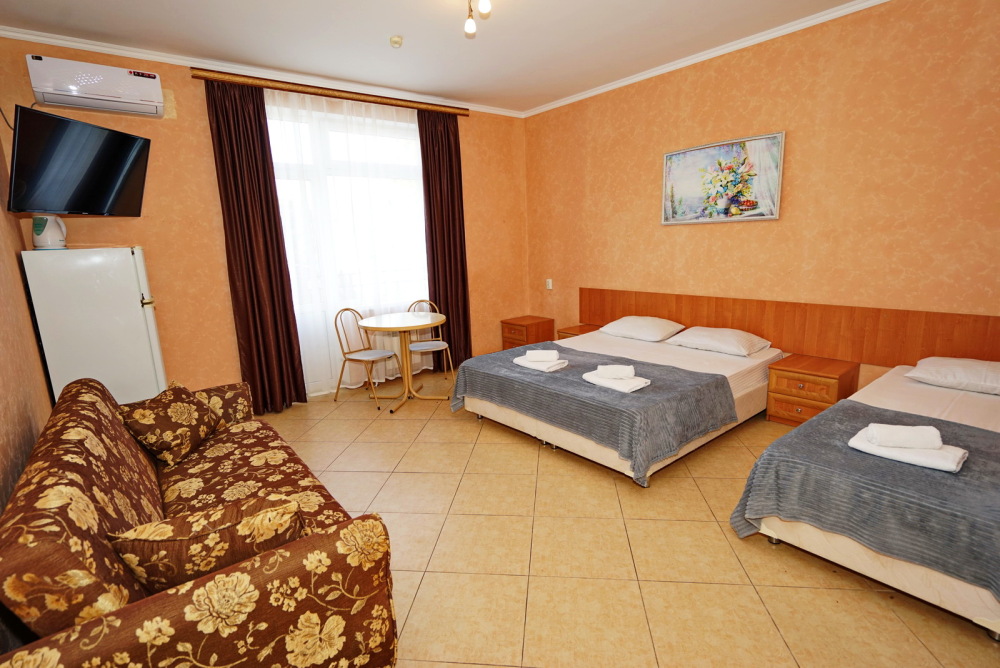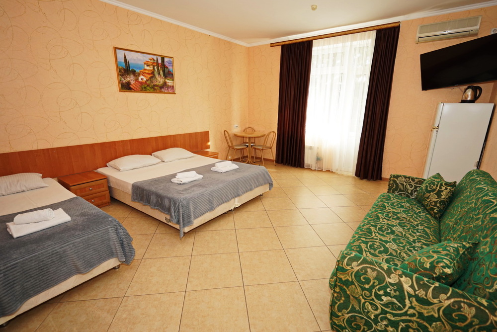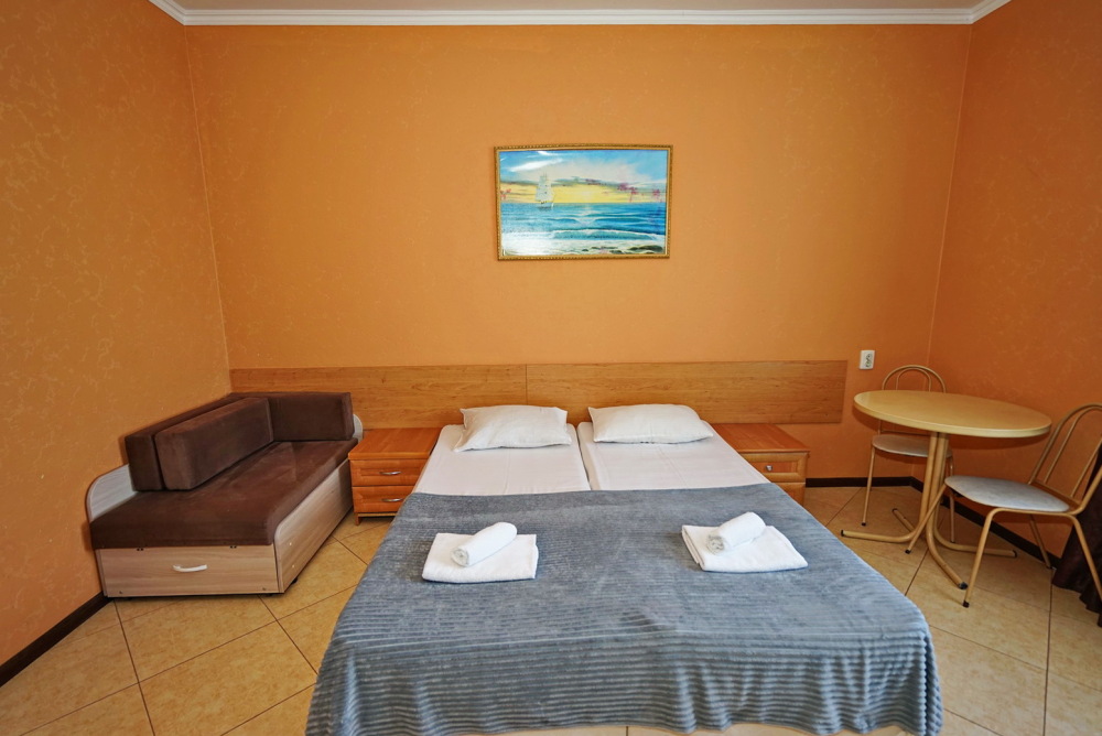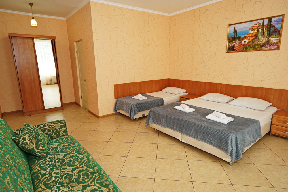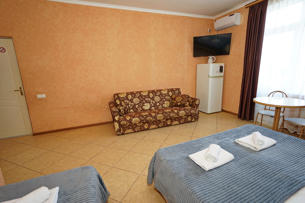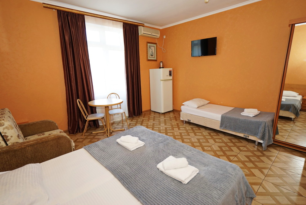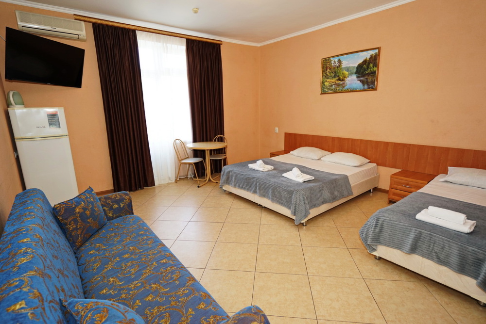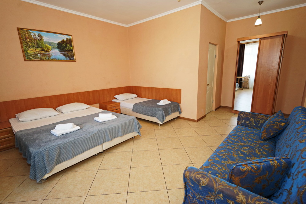 Улучшенные стандарты отличаются наличием собственного с/узла в пределах комнаты. Жилая комната со всей необходимой мебелью; ТВ, сплит-система, электрический чайник, холодильник, шкаф; двуспальные кровати и односпальные, диван-кровать, с/узел с душевой кабиной, феном и банными принадлежностями, сейф.