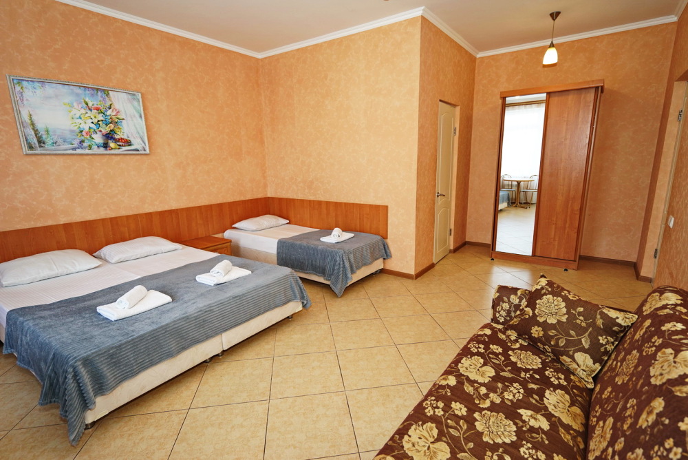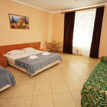 Улучшенные стандарты отличаются наличием собственного с/узла в пределах комнаты. Жилая комната со всей необходимой мебелью; ТВ, сплит-система, электрический чайник, холодильник, шкаф; двуспальные кровати и односпальные и диван-кровать , с/узел с душевой кабиной, феном и банными принадлежностями, сейф.