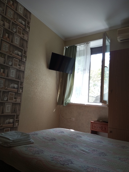 Великолепный вид из номера. К номеру примыкает ЗАКРЫТАЯ площадка с кухней (только для Вашего номера), шезлонгом и столиком со стульями, с которой открывается вид как на гору Ай-Петри, так и на море. Есть все необходимое для приготовления пищи. Особенность номера-вход по лестнице.
