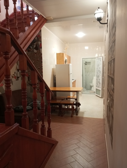Особенность номера-он с входом с верхней площадки, окно полноценное и выходит на клумбу и улицу( не шумно). Перед входом в номер столики и кухня общая.