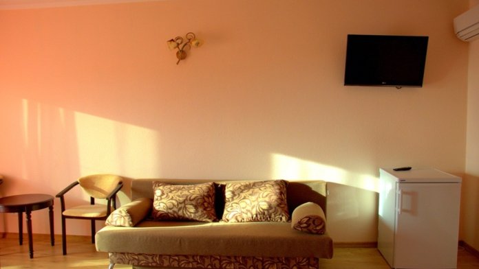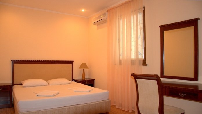 Апартаменты - двухкомнатный номер с индивидуальной кухней находится на 2 или 3 этаже с балконом и видом на море.