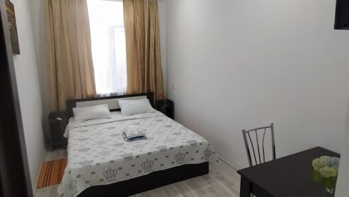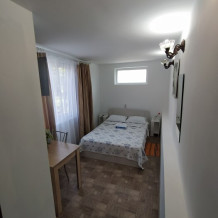 Номера с отдельным входом расположены на первом этаже. В номере двуспальная кровать. Совсем маленьким гостям, предоставляется детская кроватка. Дети до 5 лет, без предоставления места, могут проживать бесплатно.