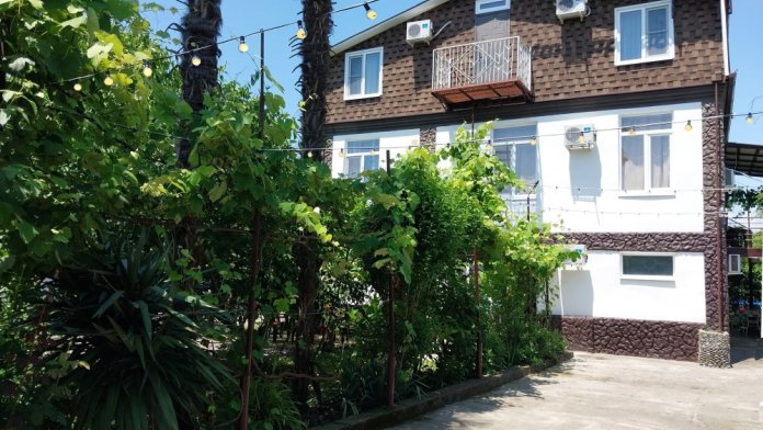 Отель расположен в 300 метрах от моря, на собственной огороженной территории с субтропическими растениями, мандариновым садом. В распоряжении гостей 13 номеров разных категорий, есть как бюджетные номера, так и улучшенные, номера с кухней. В каждом номере есть собственная ванная комната и кондиционер. Вокруг открываются живописные виды на цитрусовые сады, пышные зеленые холмы и белоснежные вершины вечных снегов главного кавказского хребта. Помимо Семейных номеров с кухней, на уютной, открытой террасе, с видом на мандариновый сад, оборудована общая кухня.