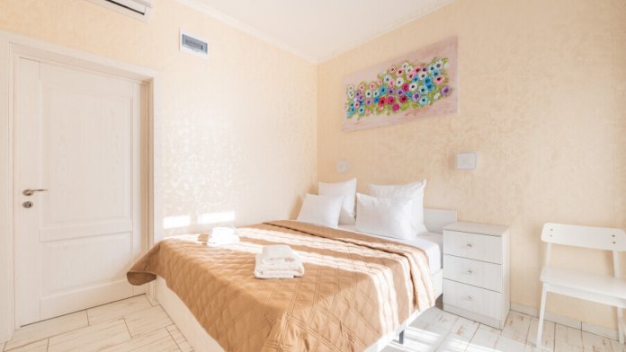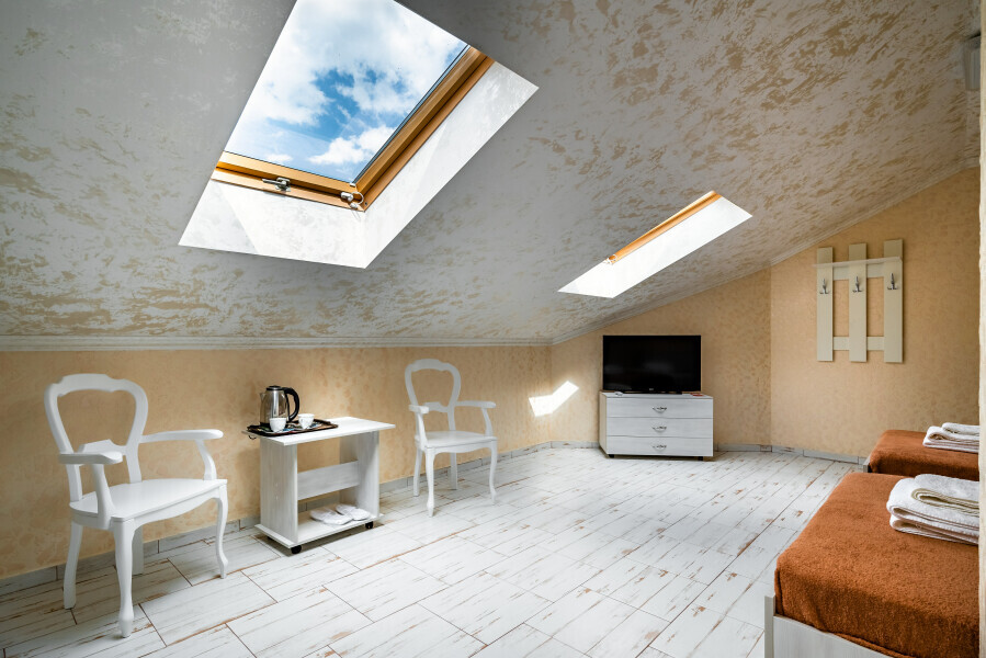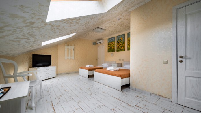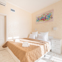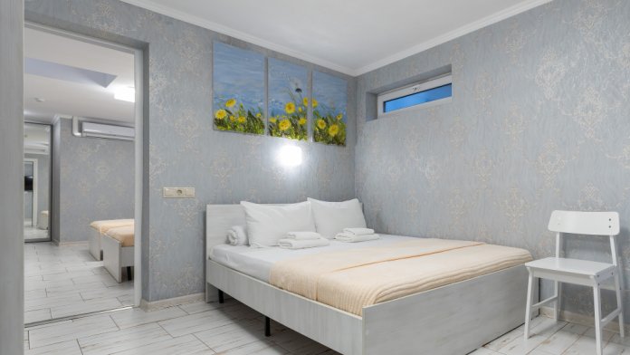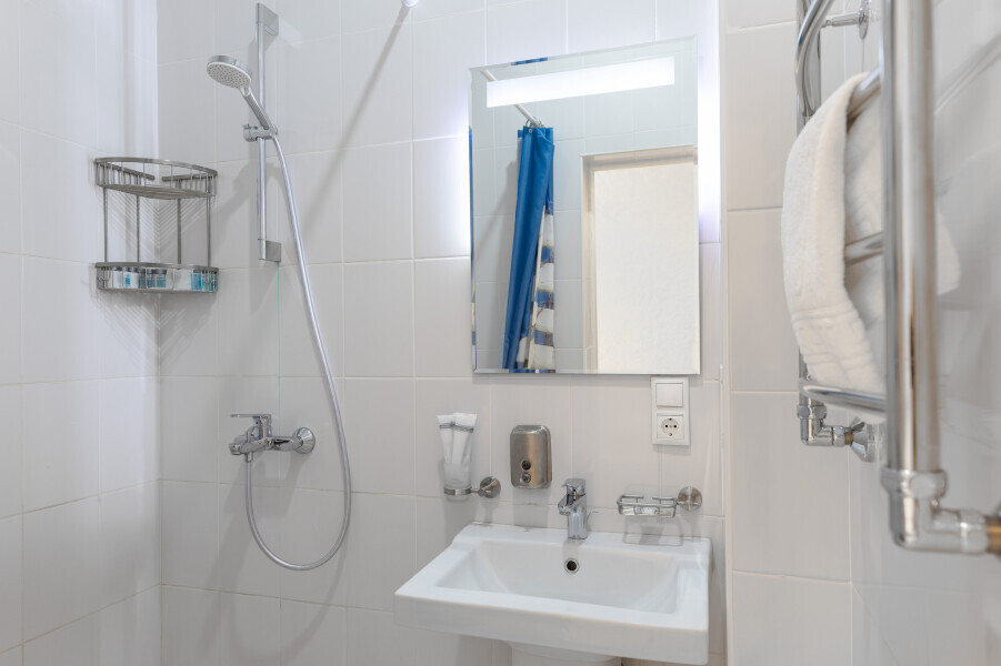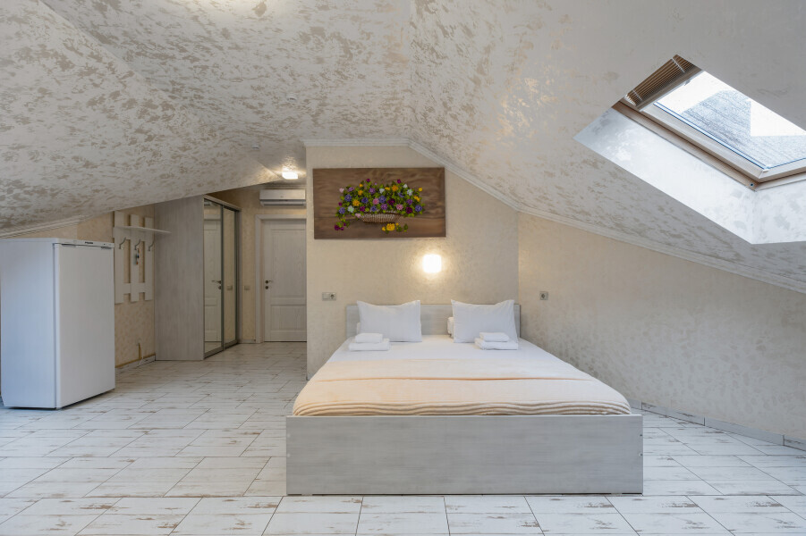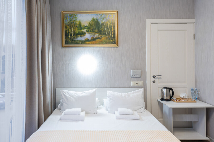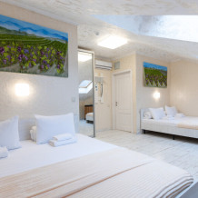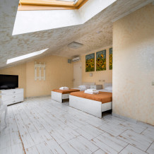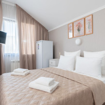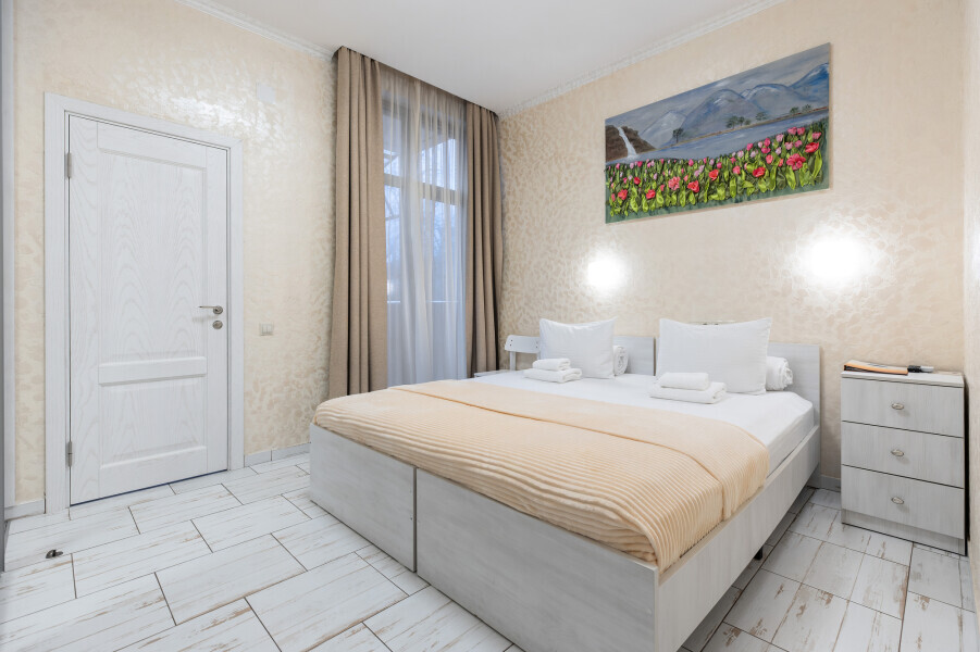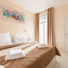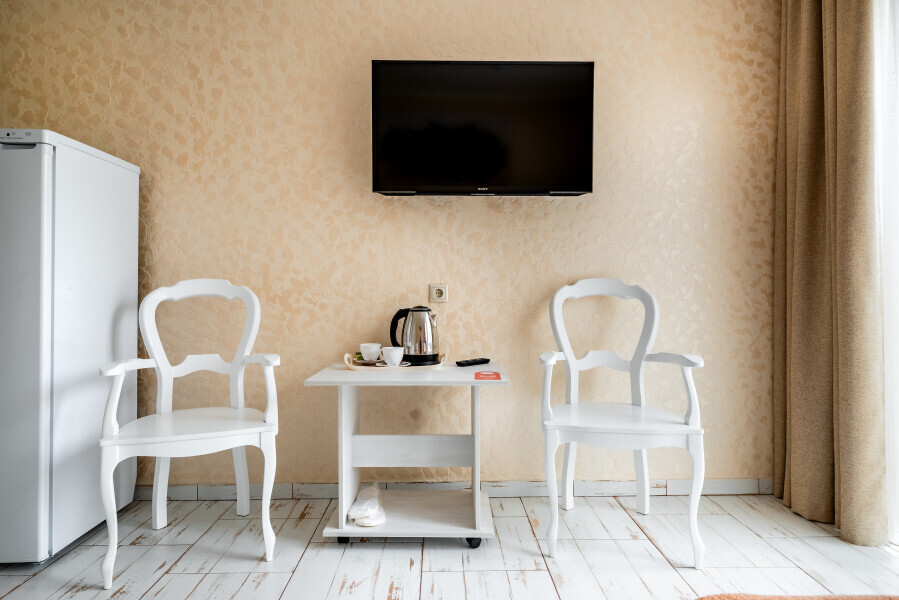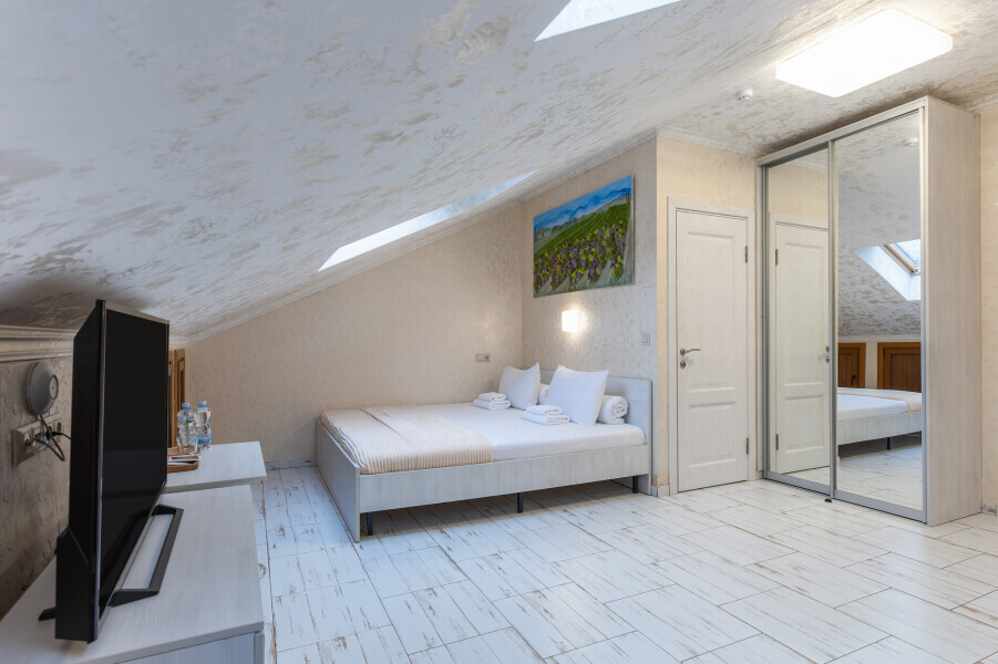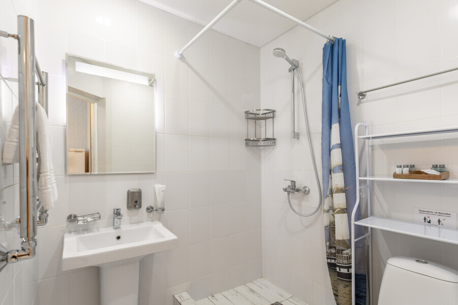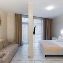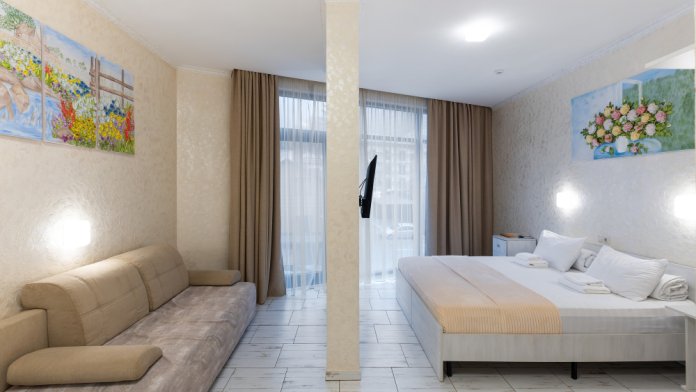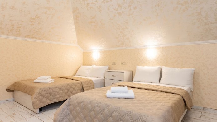 Две мягкие односпальные кровати и двухместный раскладной диван. Кондиционер, холодильник, ЖК телевизор и санузел с душем обеспечат ваше удобство. В номере есть журнальный стол и шкаф-купе.