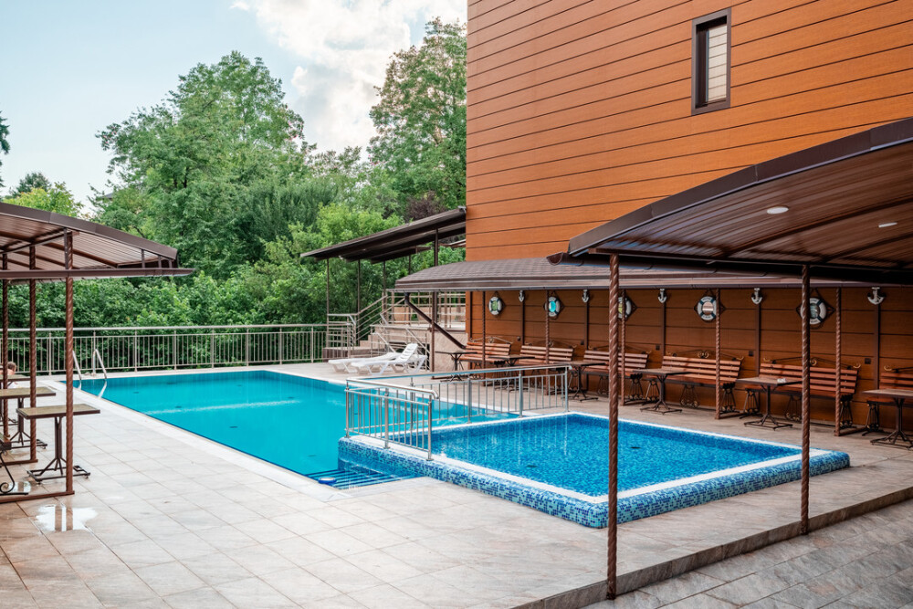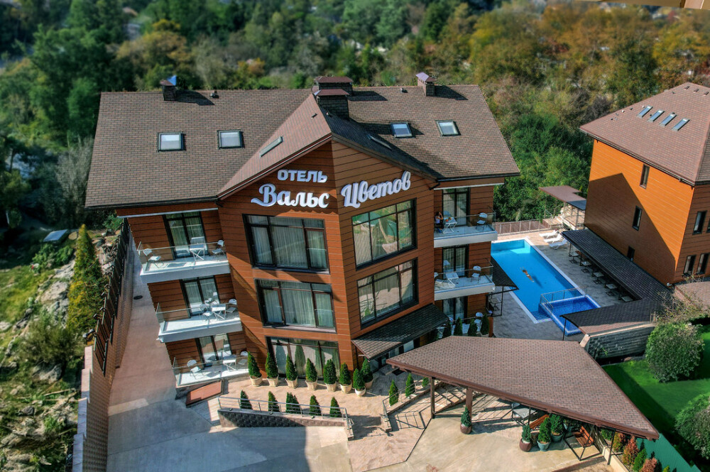 Уютный четырёхзвёздочный отель «Вальс цветов», в котором для гостей доступен тёплый подогреваемый до 30°C бассейн. Вкусная сытная еда ресторана, финская сауна.