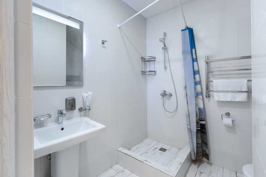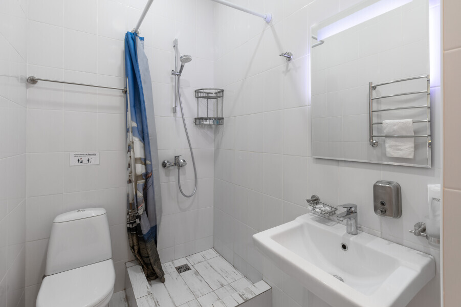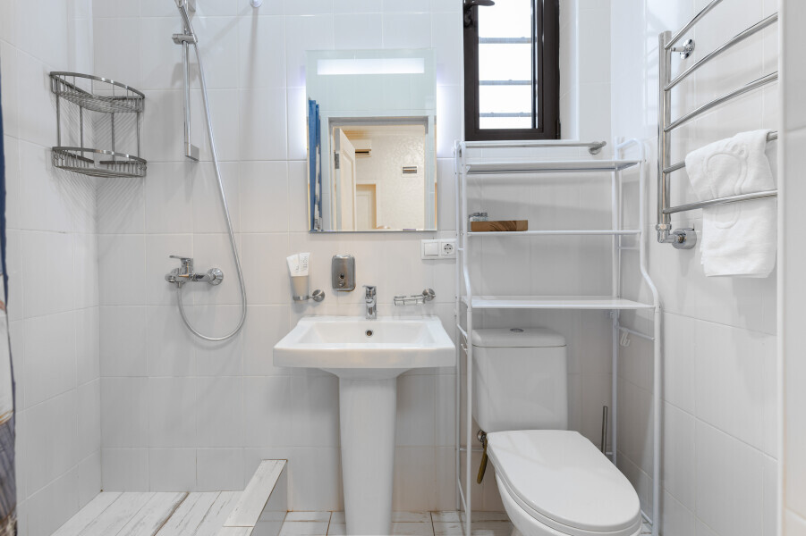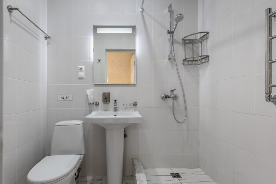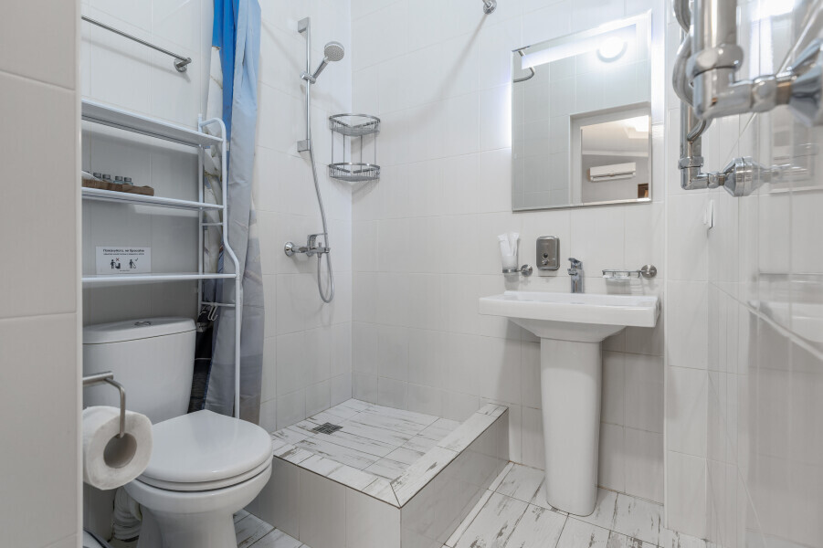 Туалет и душ в разных комнатах – удобный вариант для семьи или небольшой компании.