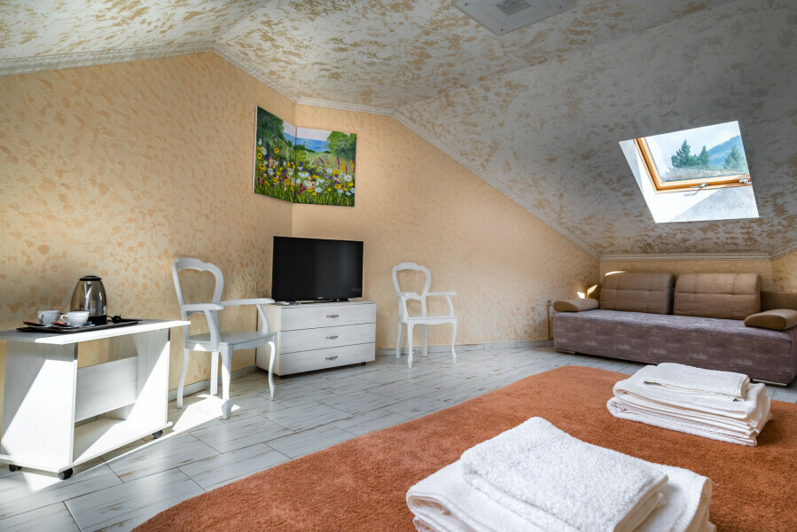 42 номера - 14 категорий на выбор: с видом на горы, с террасой или балконом. для пары, большой семьи или компании. Выберите подходящий именно Вам. По запросу предоставим утюг, гладильную доску и сушилку для одежды.