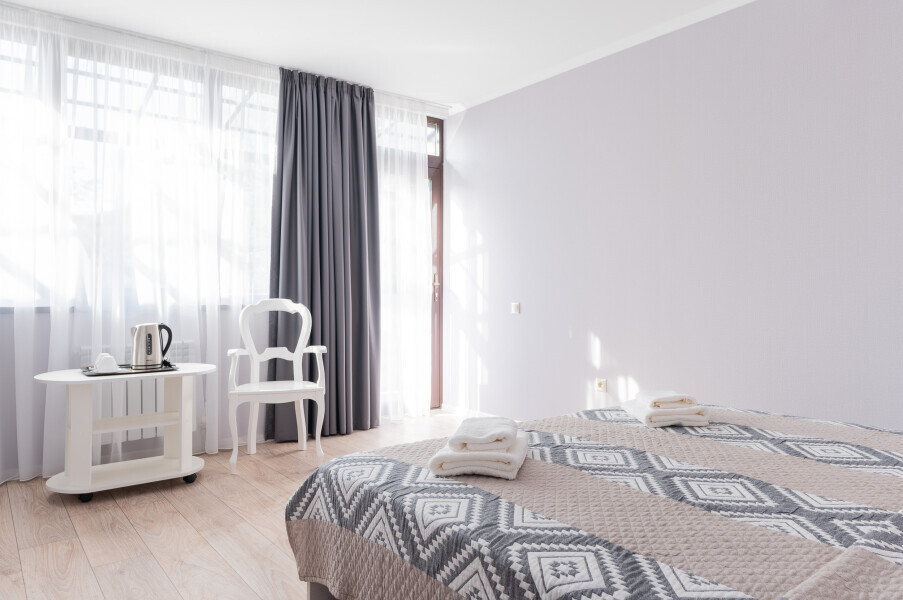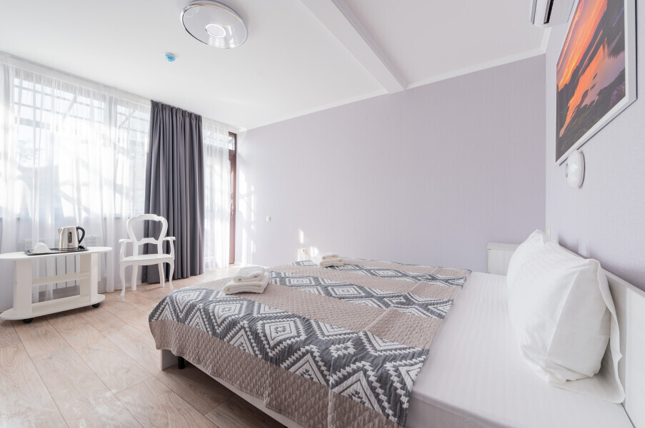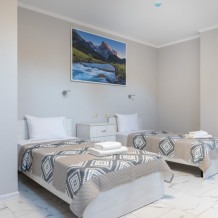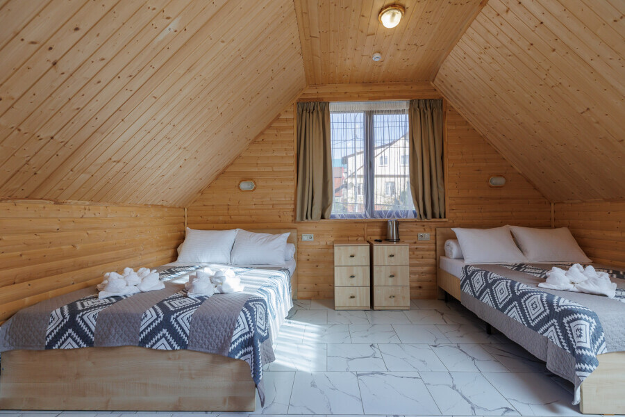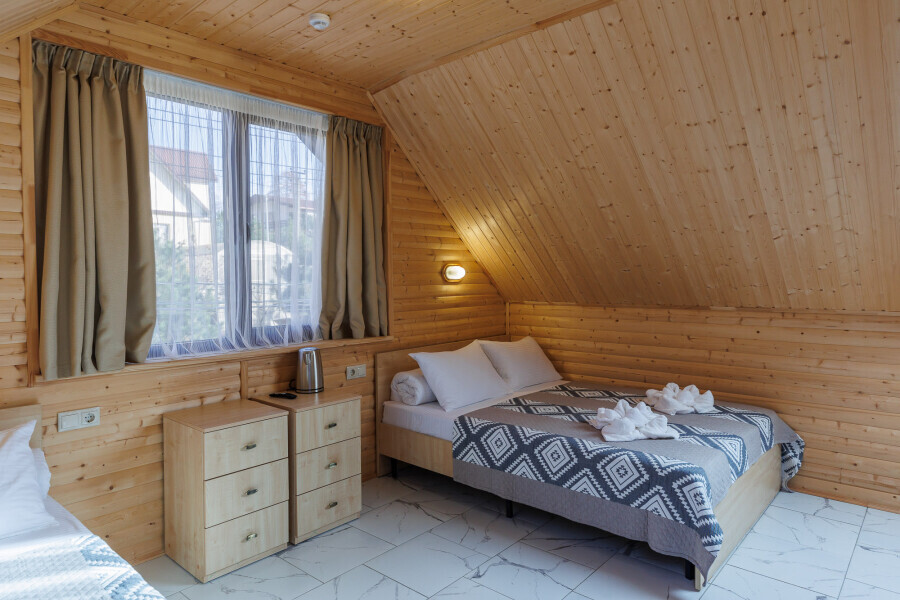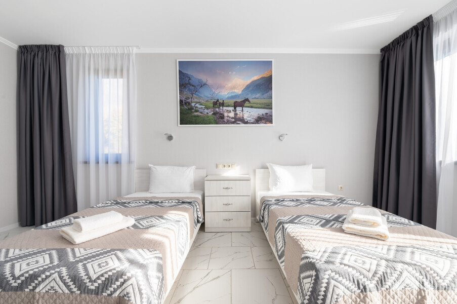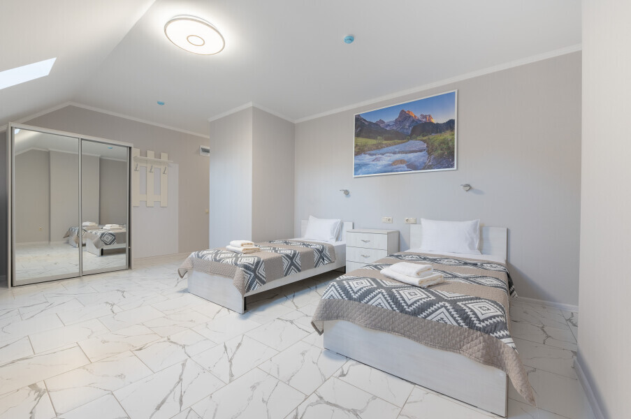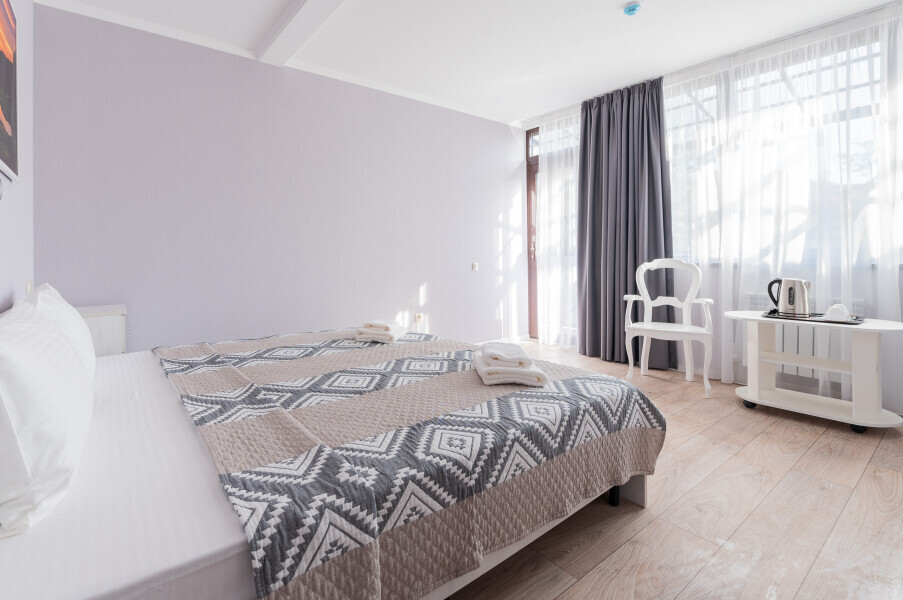 В номере: две односпальные или одна большая двуспальная кровать и кресло-кровать.