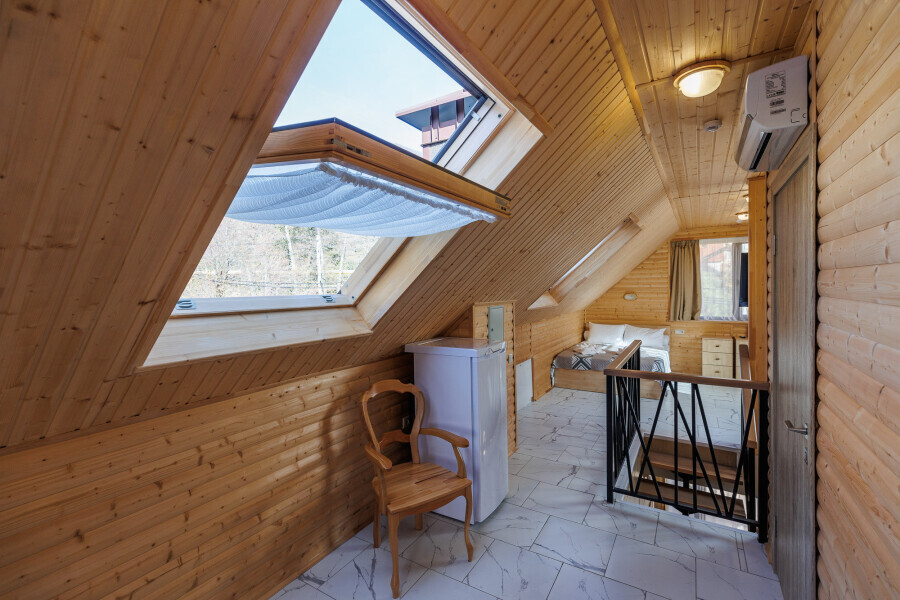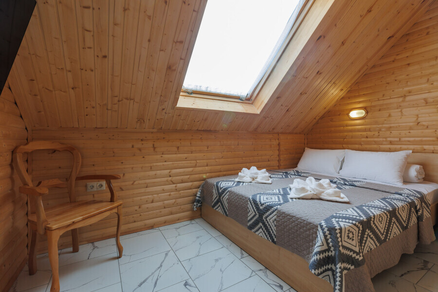Просторный однокомнатный номер с отдельным входом, который позволит вам насладиться приватностью и уединением во время вашего пребывания.
