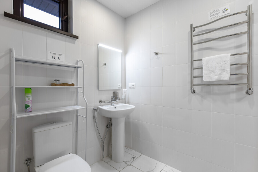 Кровать King size шириной 200 см или две односпальные кровати обеспечат вам отличный сон и отдых после активного дня. А кондиционер, холодильник, ЖК телевизор и санузел с душем обеспечат ваше удобство.