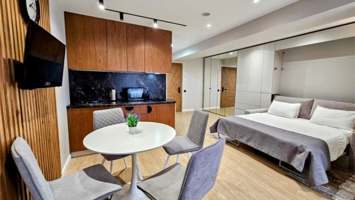 Каждый номер оформлен по персональному дизайн-проекту в стиле европейской классики. Полная комплектация современной мебелью и бытовой техникой для комфортного проживания.