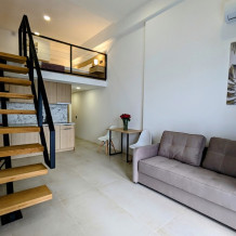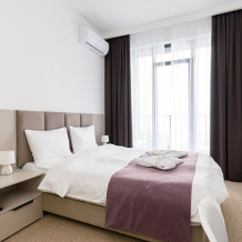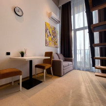 Наш апарт-отель - комбинация стиля hi-tech и минимализма, который является воплощением современной элегантности и свободы. Вас встретят просторные помещения с высокими потолками, создающими ощущение пространства и воздуха. Дизайн характеризуется открытостью, минимализмом и сочетанием различных текстур и материалов, создавая стильный и уютный интерьер.