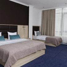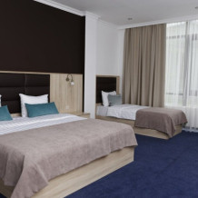 Грамотно продуманный номер, подходящий для размещения семьей, в котором удачно сочетаются атмосфера комфорта и современный дизайн . В номере созданы все условия для приятного отдыха – это мягкая двуспальная и удобная односпальная кровати, журнальный стол, шкаф-купе, чайный набор. Разумеется, предусмотрен кондиционер, холодильник, ЖК телевизор. Индивидуальный санузел оборудован душем или ванной. В стоимость номера входит бесплатный Wi-Fi и весь широкий спектр бесплатных услуг отеля, включая бассейн, тренажерный зал, сауну.