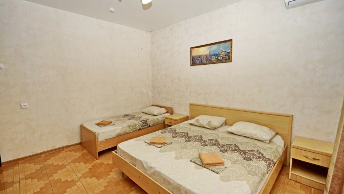 Удобства: постельное бельё, полотенца, вешалки, спутниковое ТВ, Wi-Fi, балкон.