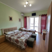 Новый, капитальный дом с 12 номерами. Комнаты номеров просторные, с хорошей мебелью и со всеми удобствами. Идеальная чистота и комфорт сочетаются с уютной тишиной курортного местечка.