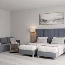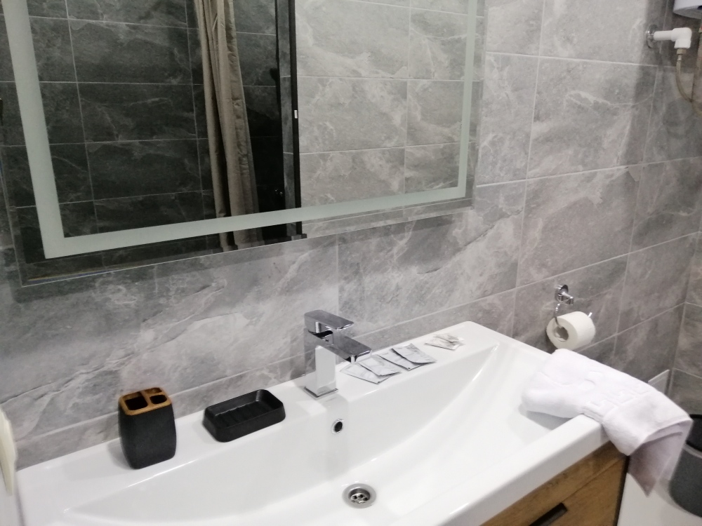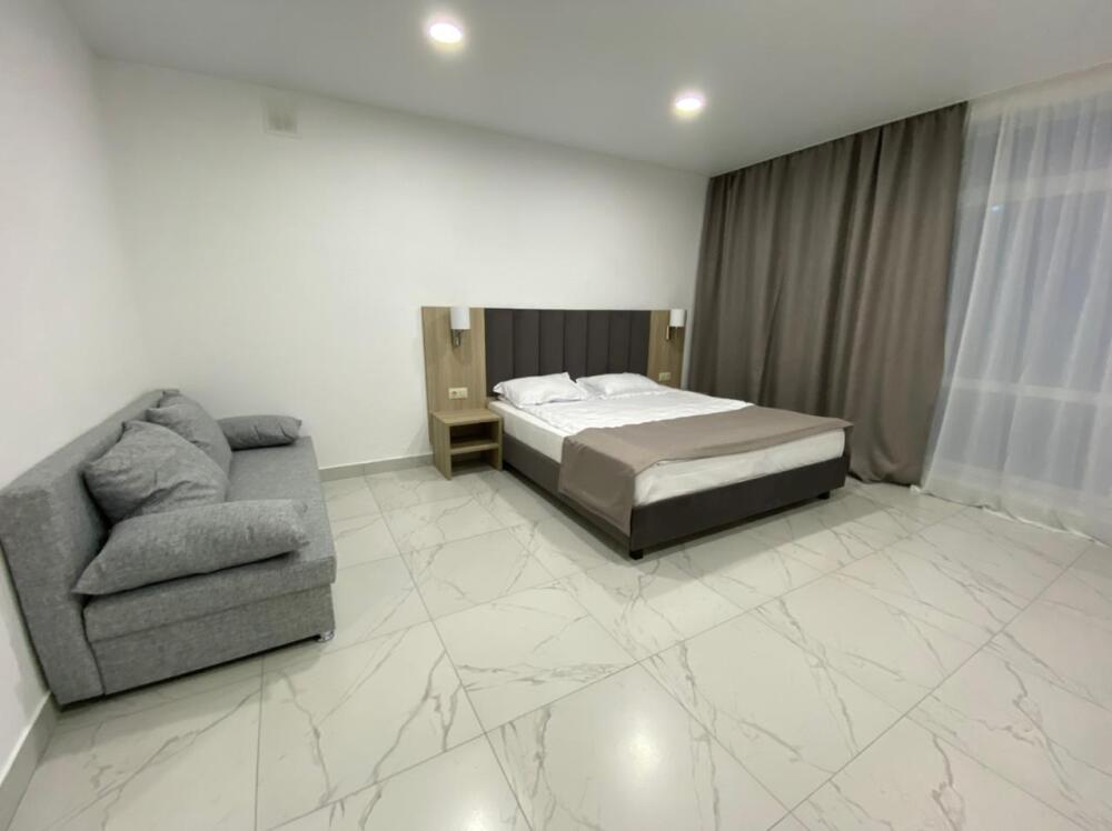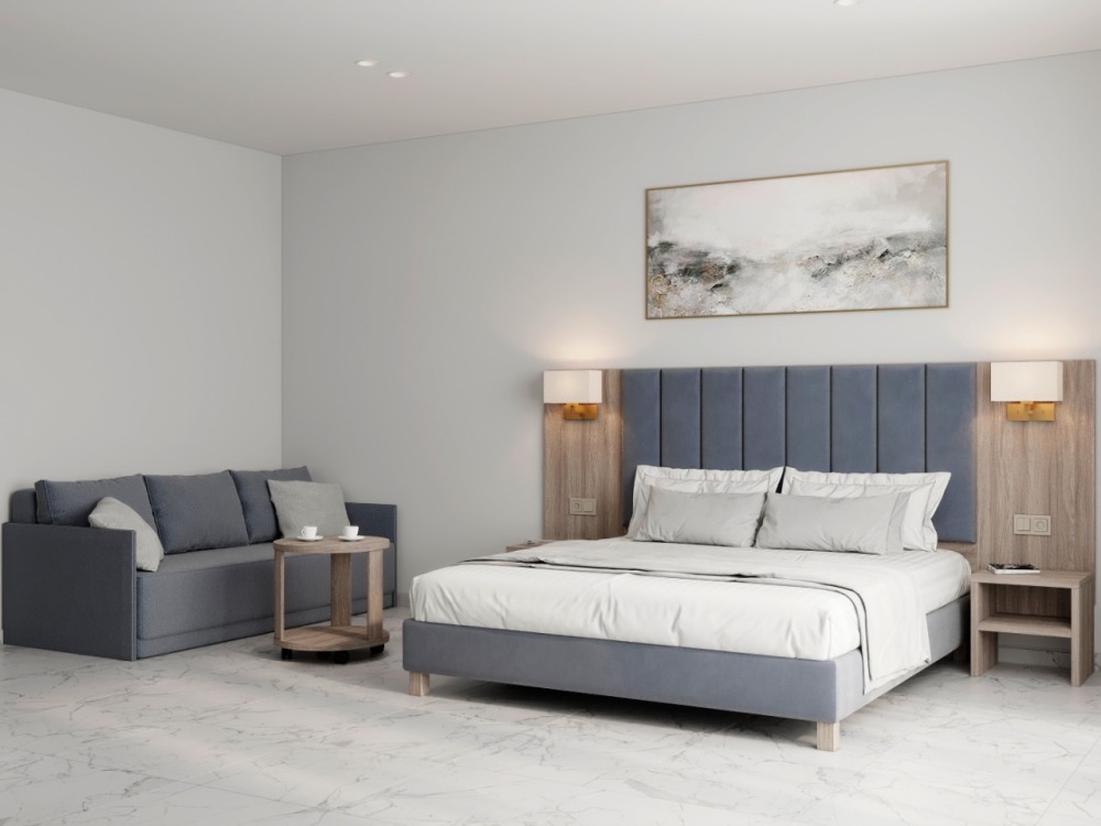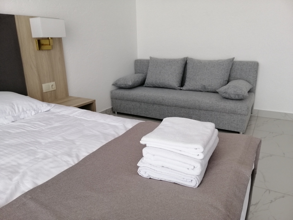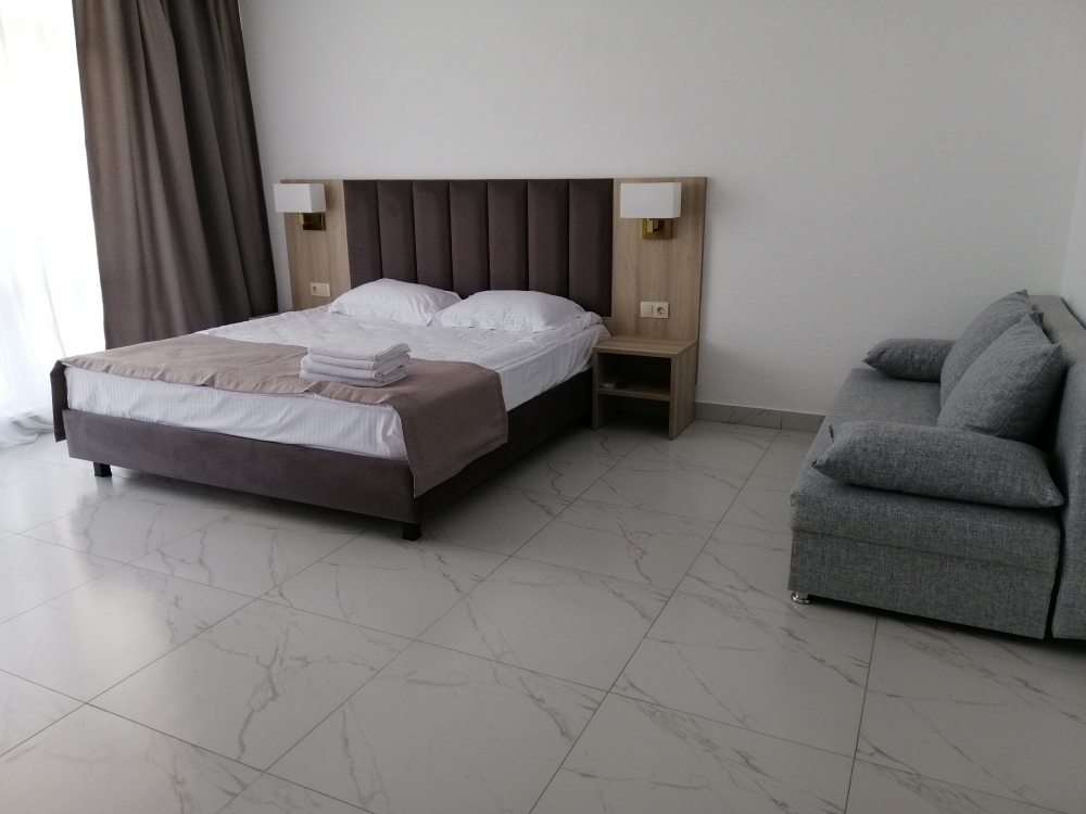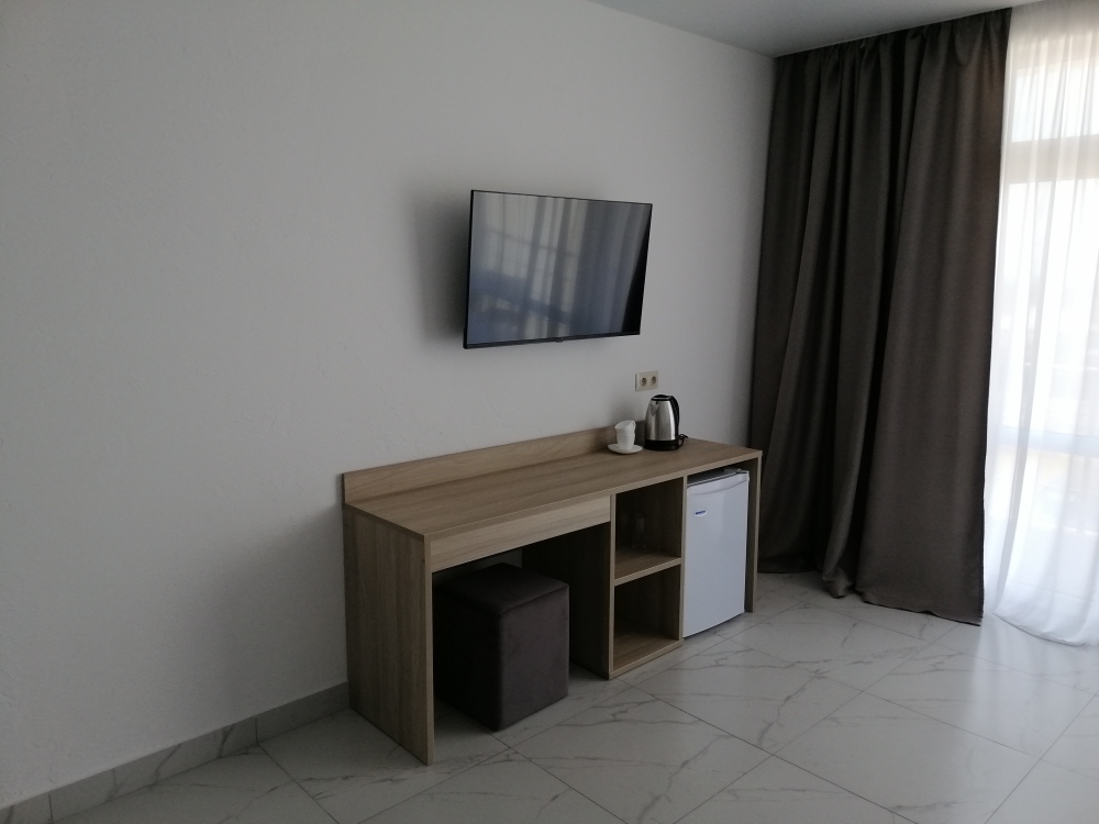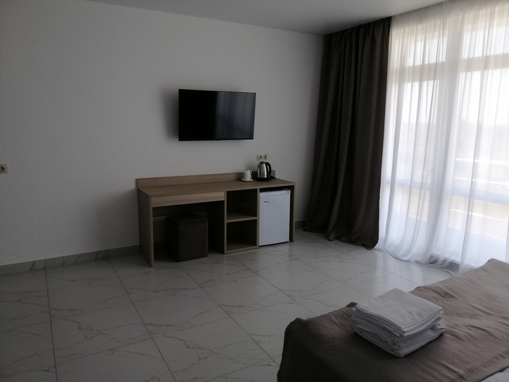 Новый отель сдаёт номера для комфортного отдыха. В каждом номере есть балкон, с которого видно чудесное Чёрное море. Видно его даже с первого этажа, а вечером с него открывается шикарный вид на закат. Номера рассчитаны от 2-х до 4-х человек. В каждом номере есть большая 2-х спальная кровать и раскладной диван, на котором также комфортно спать, как и на кровати. В номере есть все необходимое для проживания: чайная зона, холодильник, кондиционер, цифровое телевидение, скоростной интернет. В просторной ванной комнате есть тропический душ, одноразовая косметика и одноразовые тапочки. А также большое зеркало с подсветкой.