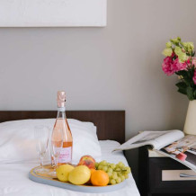 Двуспальная кровать в одной комнате, две односпальные - в другой. В каждой комнате: санузел, кондиционер, телевизор. Также в номере: холодильник, чайник, балкон (выход на балкон из одной комнаты), уличная мебель (столик, два стула).