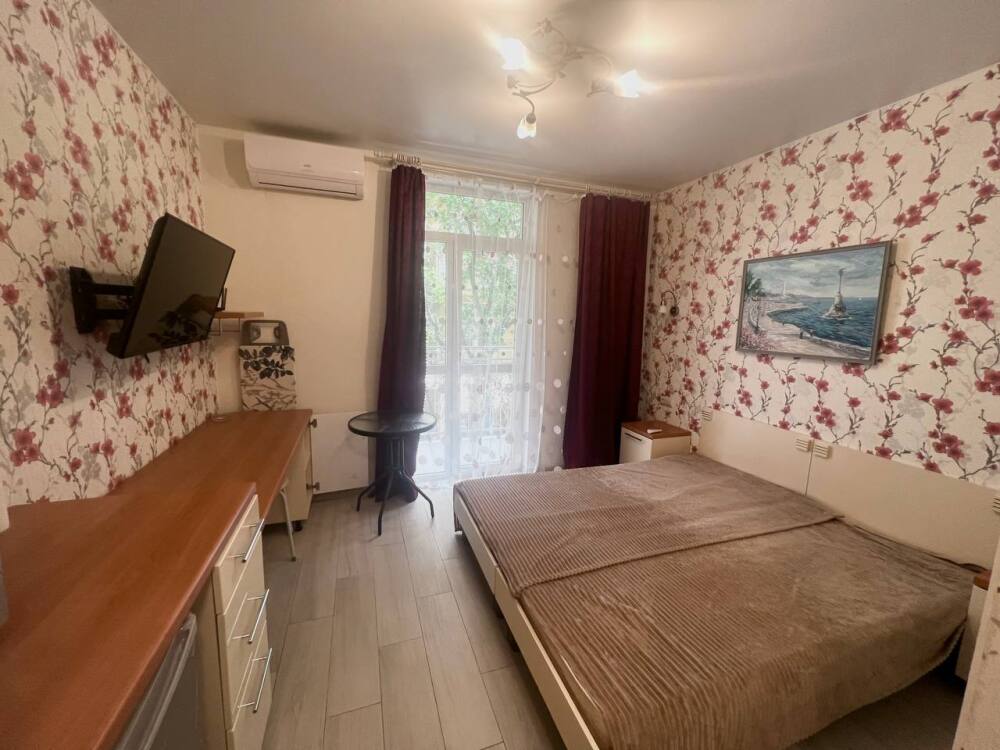 Уютный номер с балконом и двуспальной кроватью.