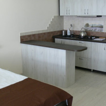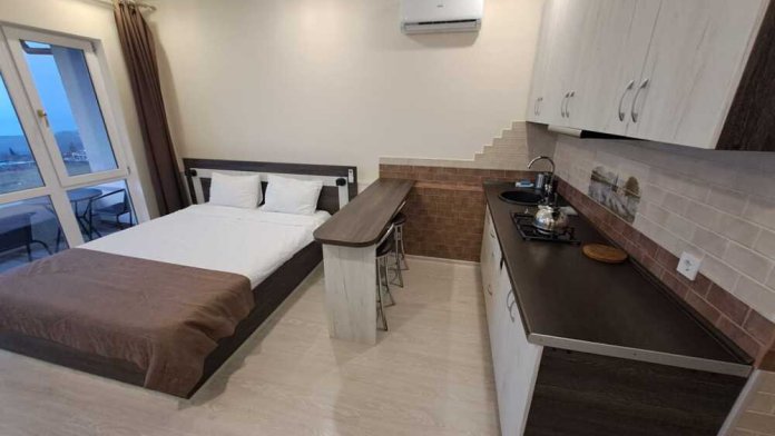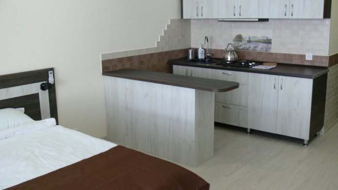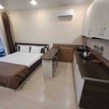 - Апартаменты-студии, с 2-местным и 4-местным (2 взрослых + 2 детей) размещением. Все апартаменты с полноценными кухнями, кондиционерами и балконами;
