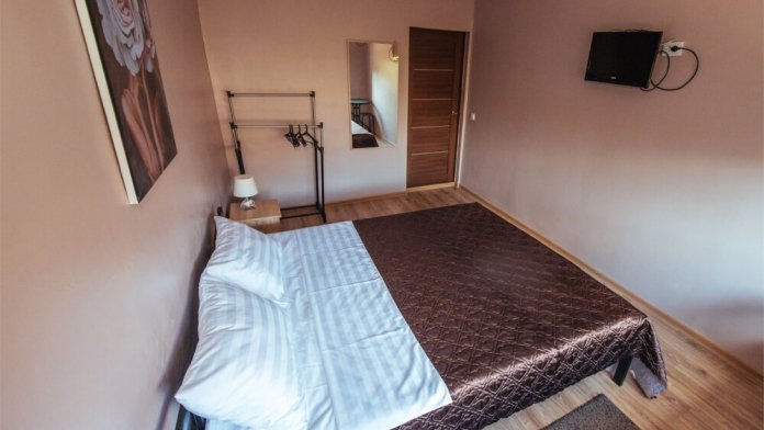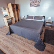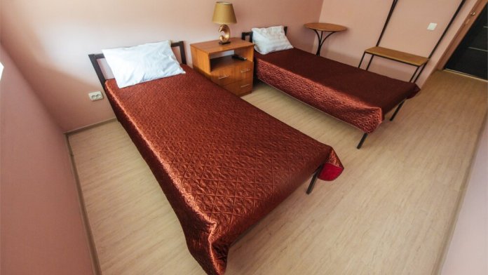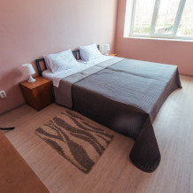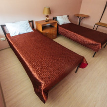 Четырехместное размещение в номере с 1 двухспальной кроватью, и 2 односпальные, с мини-кухней.