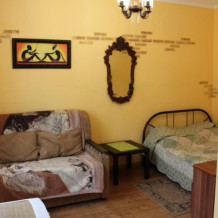 Номер однокомнатный 3-местный со всеми удобствами, расположен в одноэтажном здании в отдельном дворе. В номере: три односпальные кровати, телевизор, кондиционер, кухня со всем необходимым, холодильник, газ плита, мойка, умывальник, душ, туалет.