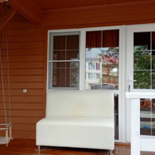 Дом площадью 40 кв.м. имеет 2 этажа, 5 спальных мест и одно дополнительное. На первом этаже студия с оборудованной кухней (электро-печь, микроволновая печь, холодильник, электрочайник, утюг, гладильная доска, двуспальный диван, телевизор, сплит-система, санузел. На втором этаже комната с двуспальным диваном и односпальной кроватью. В комнате так же имеются все удобства (санузел, телевизор, кондиционер, холодильник).