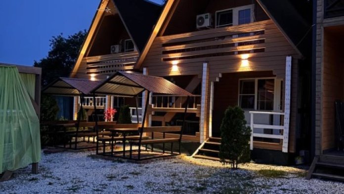 Дом площадью 72 кв.м. имеет 2 этажа, 6 спальных мест и 3 дополнительных места. В доме имеется двухкамерный холодильник, печь газовая, телевизор, микроволновая печь, чайник, гладильная доска.