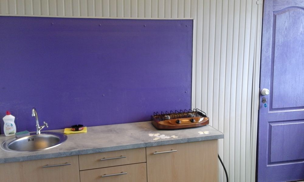 В каждом домике - в комнатах: двух- спальный диван , комод (фен, постельное белье и полотенца прилагаются) и отдельная ванная комната с душем и туалетом, горячая вода, телевизор, бесплатный wi-fi, все номера с кухнями (посуда, холодильник ,газовая плита) и кондиционерами.