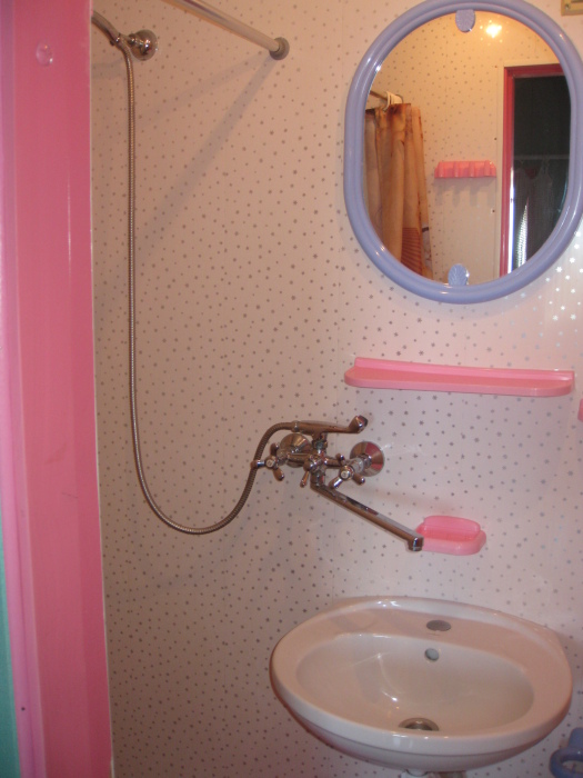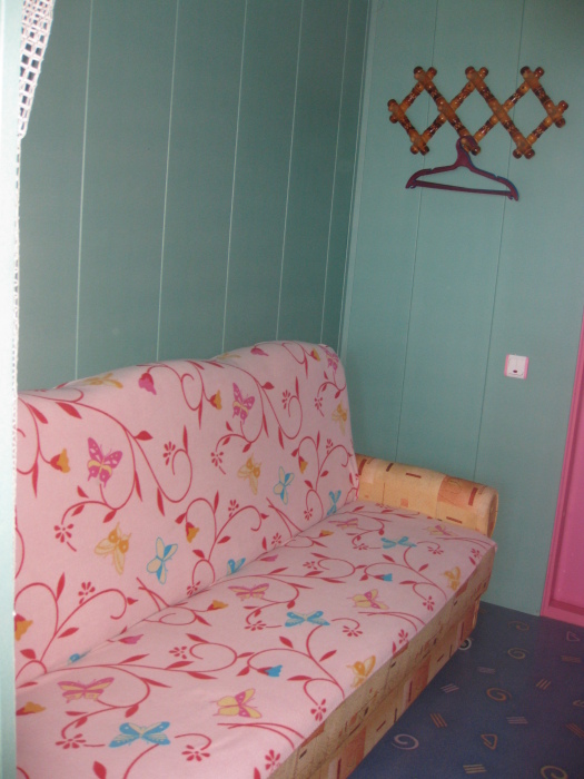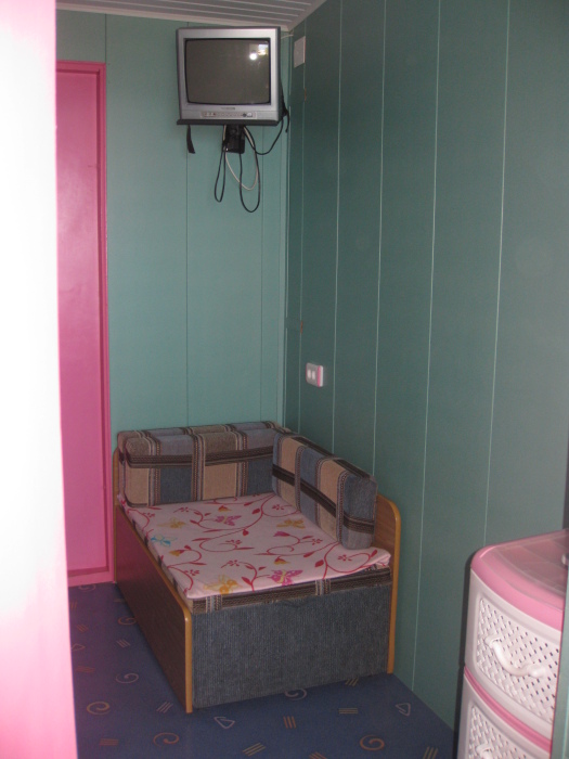 В каждом домике - в комнатах: двух- спальный диван , комод (фен, постельное белье и полотенца прилагаются) и отдельная ванная комната с душем и туалетом, горячая вода, телевизор, бесплатный wi-fi, все номера с кухнями (посуда, холодильник ,газовая плита) и кондиционерами.