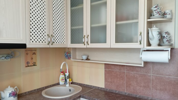 Квартира более-менее чистая , если не заглядывать под кровать. Из кондиционера падала грязь, возможно надо менять фильтра. В холодильнике был запах. Посуды достаточно. Вид из окна шикарный: на гору, море видно, ночью в огнях Судак светился. Расположение хорошее, рядом рынок, магазины, до моря минут 10-15, не спешным шагом, но учтите Новый Свет-это горы, идти в горку с моря, но не сложно. В общем, если не придираться, то все нормально.
