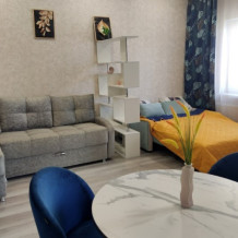 В апартаментах есть всё для комфортного проживания: 4 спальных места, постельные принадлежности, кухня, посуда, фен, полотенца, Wi-Fi. Горячая и холодная вода круглосуточно