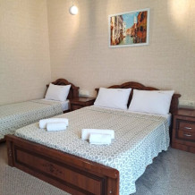 Предлагаем проживание в уютных номерах. Все номера оборудованы индивидуальными ванными комнатами, большими двуспальными и односпальными кроватями.