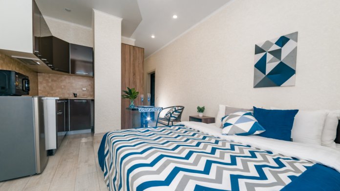 Светлая студия в новом ЖК класса «Комфорт» с евроремонтом и потрясающим видом на море.