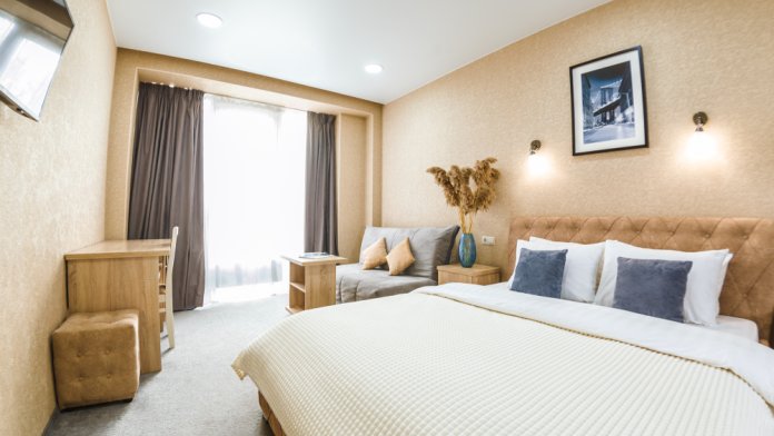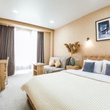 • 1 двуспальная кровать, 1 кресло-кровать, детская кроватка (по запросу)