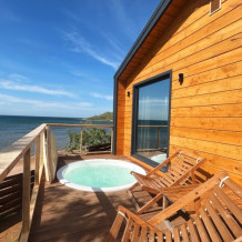 Отдельный видовой коттедж с сауной, большой террасой, на которой расположена горячая купель с джакузи и собственным выходом к морю. Сауна и купель оплачиваются отдельно.