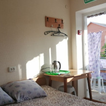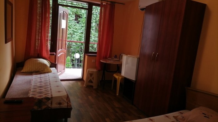 Номера все категории стандарт (телевизор, интернет, холодильник, кондиционер).,вода холодная, горячая без перебоев. Каждый номер имеет свой вход. Дворик не большой, в цокольном этаже есть не большая общая кухня.