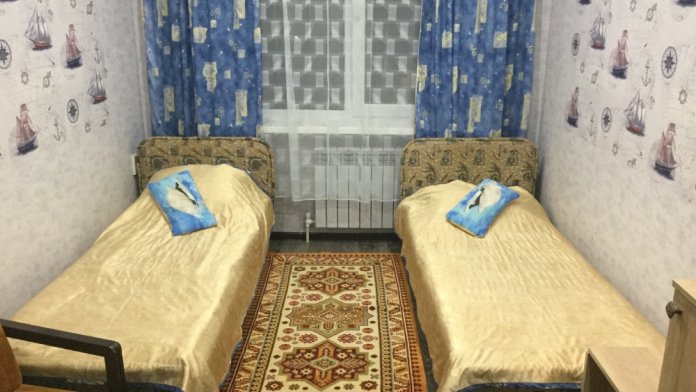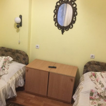 Общая кухня на первом этаже. Санузел общий, на два номера. Горячая и холодная вода постоянно.
