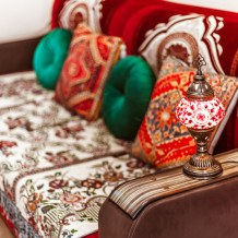 В гостиной двуспальный диван-кровать и 2 полуторные кровати, которые могут объединится в одну кровать.