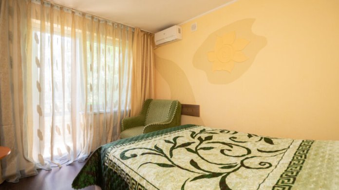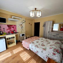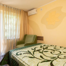 Тихий и просторный двухкомнатный номер общей площадью 29 м2 с двуспальной кроватью размером 160 × 200 см и двуспальной кроватью размером 1604× 200 см , В номере 2 кондиционера, 2 телевизора. Окна номера выходят в тихий двор, что позволит оградиться от суеты и шума города. В ванной комнате с ванной предоставляется фен, комплект полотенец.