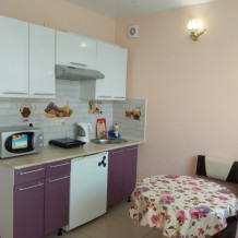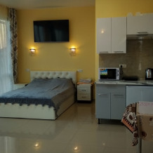В номере кухня со всем необходимым, ванная комната, кондиционер, телевизор, теплый пол, высокоскоростной wi-fi, двухместная кровать, шкаф-купе