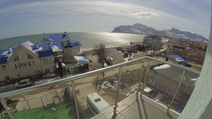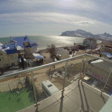 Квартира расположена на 4 этаже 7 этажного, нового дома в 80 метрах от пляжа Черного моря. Из окна и с балкона открывается вид на Черное море, г. Кара-Даг и пос. Коктебель.