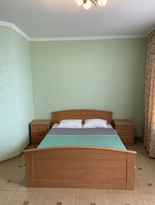 В апартаменте имеется кухня, санузел, открытая лоджия 10 кв. м; 2-спальная кровать + 2-местный диван, телевизор, кондиционер, фен, утюг, постельное белье, полотенца.