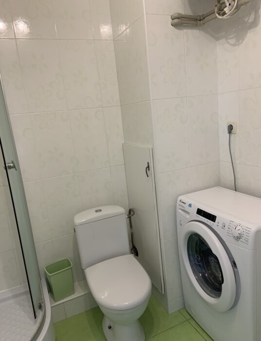 Всё необходимое кухонное оборудование: плита, свч, мультиварка, электрочайник, холодильник, посуда, Стиральная машинка. Имеется грильзона.