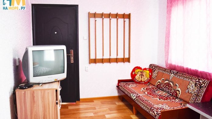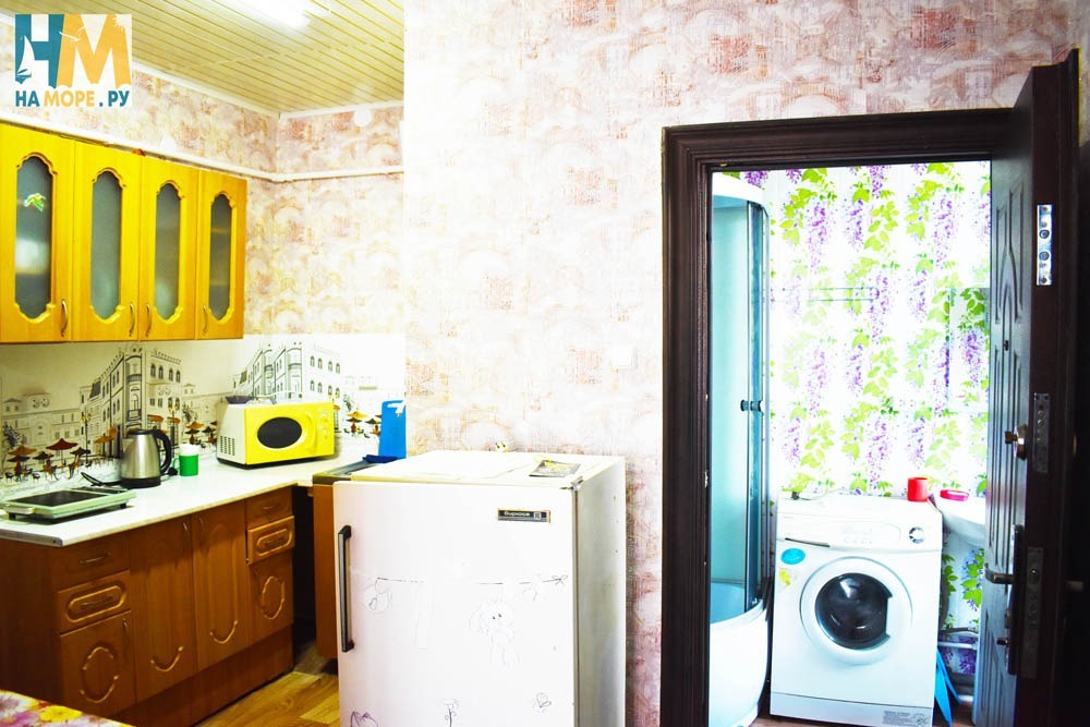Душ и туалет общие на три номера, на этаже. Также есть на улице раздельный санузел. Море через дорогу.