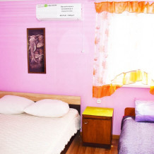 Комнаты расположены на втором этаже. Удобства общие как на этаже, так и во дворе. Кухня оборудована всём необходимым. Смена постельного белья раз в 10 дней. Есть небольшая зона отдыха, мангал, видеонаблюдение, вода круглосуточно. Трансфер по запросу за дополнительную плату. Вечеринки запрещены. Курение в строго определённом месте.