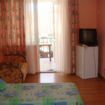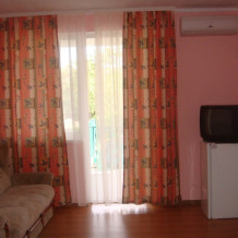 В доме для отдыхающих восемь просторных номеров со всеми удобствами (четыре 3-местных и четыре 2-местных номера), в каждом номере есть дополнительное место. В номере телевизор, холодильник, кондиционер, холодная и горячая вода круглосуточно. Есть кухня с набором посуды для приготовления пищи.